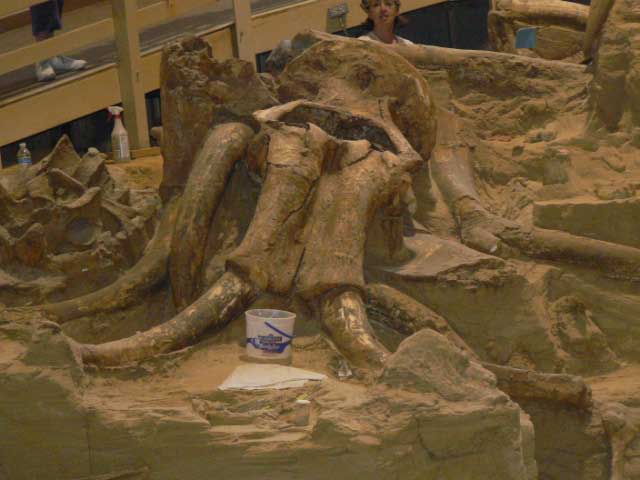 We really enjoyed the Mammoth Dig site in Hot Springs, SD. It is an active museum/fossil dig site. There used to be a sink hole with a spring in it. Male mammoths, ages 19-35 would go to the edge to eat the greener grass in the winter or would climb in to drink. The ground would give way and they would fall in as they ate or they would climb in to drink and not be able to climb out of the slippery slopes on the side. Notice who and the age of the mammoths that fell in. There is a lesson in that. I must say, there are so many exceptions in humans to that generalization of men. My son, Cody, is extremely responsible and safe. He wouldn’t eat the grass at the edge, he would design some contraption to cut the grass from a distance and then he would add bacon to it and eat it for breakfast! Ha! Ha! Anyways, all of us loved it. We were able to walk around the dig site and watch the actual scientists dig the bones up. It was surprising to see how little they have actually dug in the last 30 some years. They have dug about 22 feet down and still have at least 60 more feet. That would be around 90 more years of digging up mammoth bones. Yikes. The tour was excellent. Even little 2 yr old Josephine was entertained. She loved the mammoth bone house she got to play in. The museum also told about other extinct animals. All of us learned a ton.