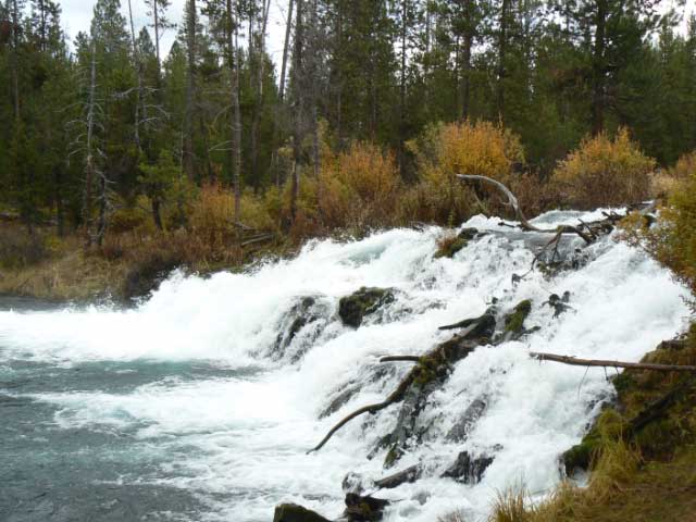 We camped at two state parks. They give service connected disabled veterans 10 nights free every month! Can you believe that! What a state! We were so blessed by that! It is nice to know they appreciate their veterans. La Pine State Park was great. The rivers and streams were gorgeous. We hiked to a few of them and then to some water falls. Oh, it was my favorite place, yet. Shae and I loved it. It wasn’t that the falls were the most spectacular falls, just the whole setting was perfect. There were tufts of grass on top of soft soil that led down to the clearest water you can imagine. We walked right up to the falls and could even touch them. Oh, it must be wonderful in the summertime. We might even be able to swim to the falls!