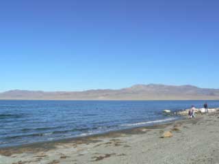 The other day we kind of got in a fuss about this subject. He said he is trying really hard to drive slower for me. He is sick of my griping about his driving. He wants me to keep my negative comments to myself. I feel like I should speak up if I don’t feel safe or need him to slow down when I am nursing the baby. He said I just need to say it different. So, I want to change and please my husband. So, I have been silent. Not too silent so I am being a smarty pants, just trying to keep my comments to myself. I have to try to chose my words more carefully. So, yesterday we decided to go to the lake near where we are camping. We were driving down the road and passed at little side road that led to the lake. Now, up ahead there are numerous roads to the lake, but Shae wanted to turn around and go back to this particular one. That is fine, nothing wrong with that. He is driving back the way we came when suddenly he cranks the wheel and we start to race towards a little dirt road. Now to me, all I see is dirt, a ditch, and our van flying off the road. To him, he saw the road and turned the wheel. We made it. It just scared the pants off of me! I yelled, “Shae!” That is it. I didn’t say another word. We made it fine. We drove down the rough dirt road for quite a ways when suddenly, the van stopped moving. We were stuck in the dirt. Our big ol’ 15 passenger van was stuck in the dirt by the lake. I tried to control the thoughts I was having, like, “He deserves this. He shouldn’t of gone down here.” I tried to just laugh and hope he could get us out of this mess. Otherwise it would be a long walk back to the camper to get our huge truck to pull us out. He hit the gas and then would stop and put it in reverse. Forward, Reverse, Forward, Reverse. I had Cody get out with the video camera. Shae didn’t give up and finally got that van out. We weren’t stuck anymore. He said, “I hope we can make it out to the main road!” That was reassuring. We parked it and hiked the rest of the way to the desert beach. It was beautiful. We had a great time. I tried not to laugh or make a negative comment, after all, we were alive and not stuck anymore. Shae drove us out of the sandy road and to the pavement. We made it out with out any damage to us our the vehicle. He is a good driver and I am going to be a better “not griper” while we travel.