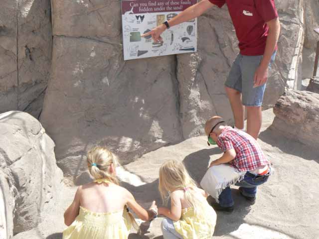 We went for the drive around the scenic loop. Shae stopped the van so we could look at the holes made in the ground by animals. I opened the side door so the kids could see them. As I went to close it, Shae told me he would do it by driving forward and then putting on the brakes. Then, the door would slide forward and shut. This is something he and I have done for years with different vehicles. So, I sat back as he pulled forward, but he slammed on the brakes! Wow! We flew forward, thankfully in our seat belts. The door rushed forward and smashed into the lock. Well, it closed, but we were all a little surprised at the force of it. He just cringed and kept going. We enjoyed the rest of the drive down the terribly bumpy dirt road. We were almost out of gas and I had read the map wrong. I thought the scenic drive was a lot shorter than it really was. So, when we arrived back at the visitor’s center, we were very low on gas and now our sliding door wouldn’t open! The door jammed when Shae put on the brakes too hard! The kids and I went back inside and left Shae alone to fix it. I have learned over the years to leave him be when something like that happens. We try not to bother him when he is fixing broken items.