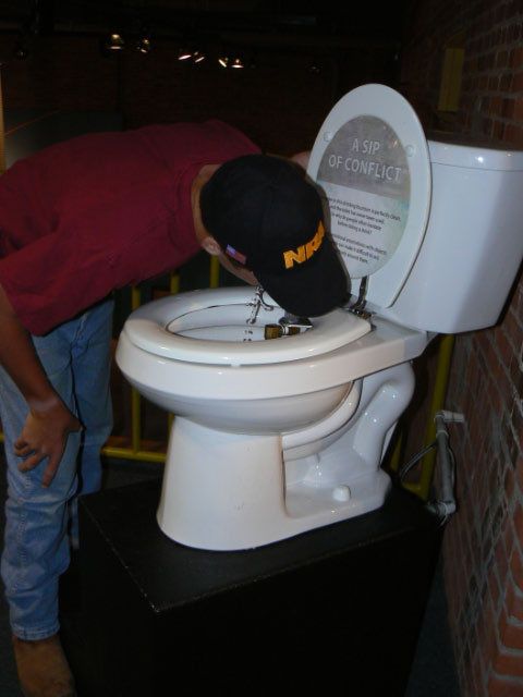 | We figure Cody must like toilets after we found him drinking from this one at the Discovery Center |
