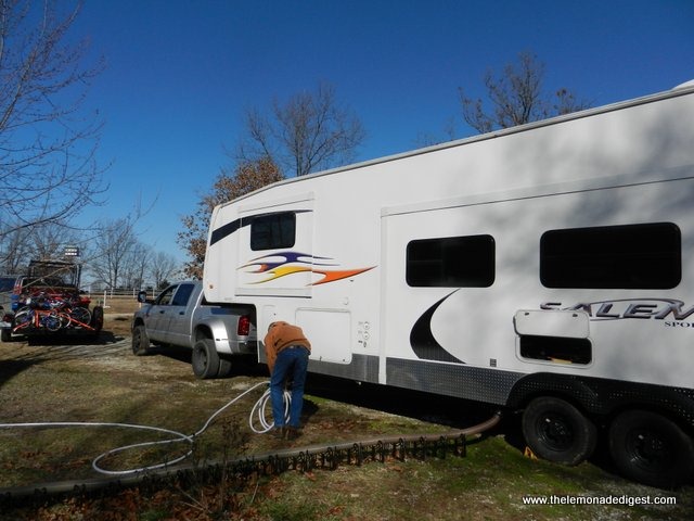Loading up and heading out is no easy task. Besides all the work to be done in the camper, my dear husband has to load all of our “toys” onto the flat bed. It is like a puzzle to put each piece into place and then hook everything securely.