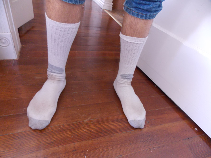 He walked out and said, “Mom, I got a great idea. My socks are wearing out on the bottom so I turned them around so the heel is on the top. Now I can wear them longer!”