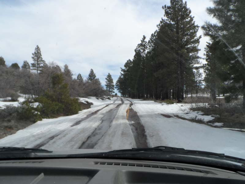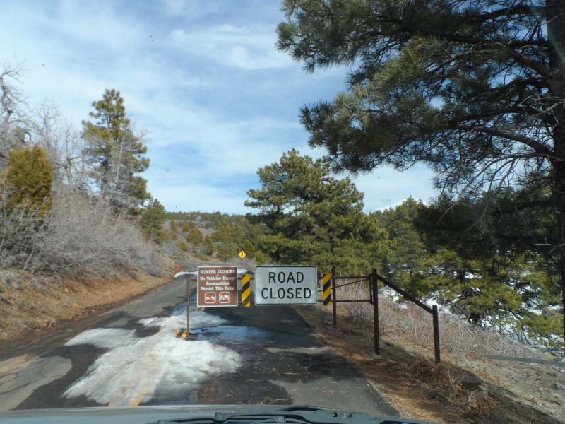 We got quite a ways up the road when we came to the road closed sign. The park doesn’t plow the snow and it was too deep past that point. Oh well, we don’t cry of the little things, so we just turned it around, attempting to avoid the deep, thick mud in the ditch behind us, and headed back down the mountain.