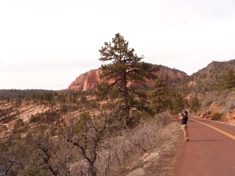 He and I spent an hour climbing up and down the red, crumbly cliffs and slopes weaving through the mesas and buttes west of Zion National Park. With the gorgeous formations in the background and no one around, it was wonderful.