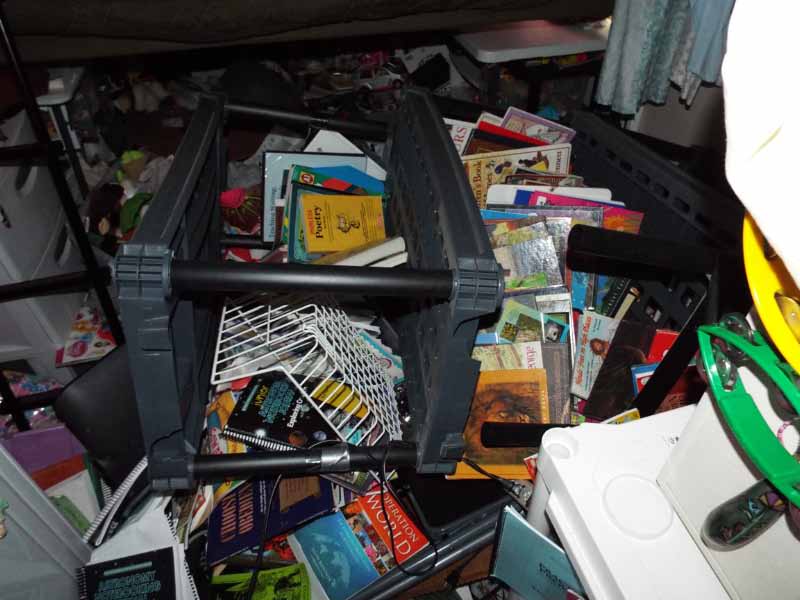 | Items from my desk slid off the end as well as the things underneath it getting thrown in front of it. |