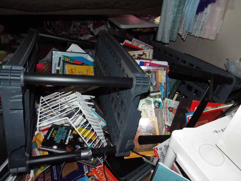 | Even toy shelves on the back wall flew forward and spilled Josie’s toys! |