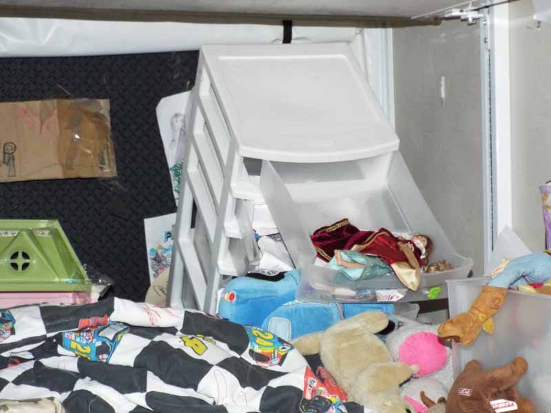 | Our camper must have tipped far to the right, everything on the left had shifted that direction. |