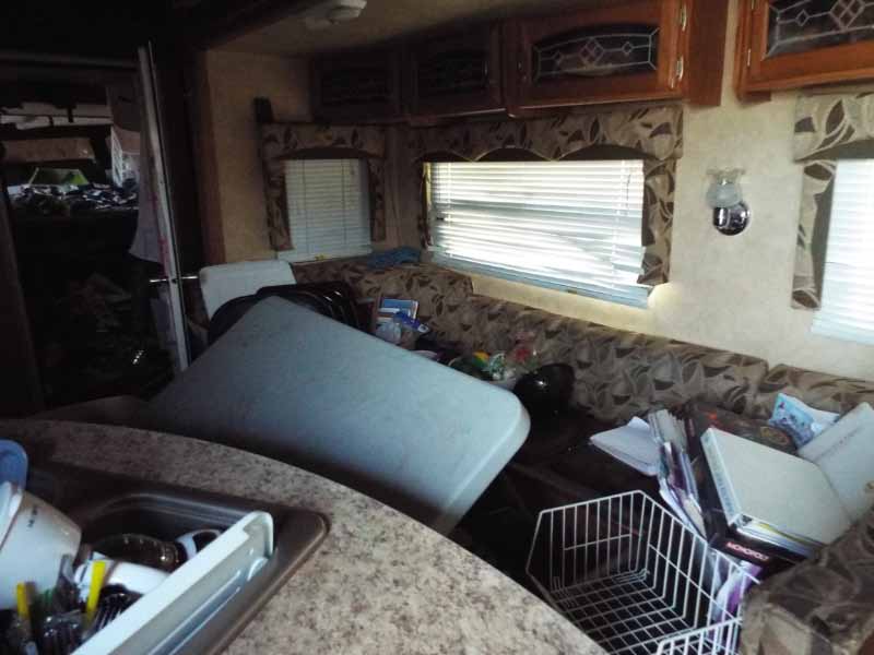 | Our camper must have tipped far to the right, everything on the left had shifted that direction. |