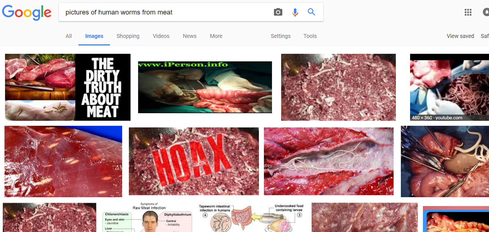 So, I Googled worms in meat. We proceeded to look at photos of worms in people that were caused by under-cooked meat.