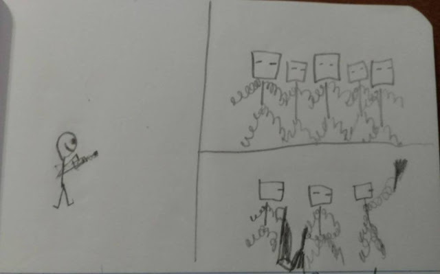 guy. One day he found a remote and he hit a button. Then he had a robot