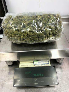 K9 Dasha caught the marijuana scent in a postal parcel manifested as “Zoomingos Monkey with Banan” that was packaged in an outbound mail container. The CBP K9 officer opened the package and noticed a silver pouch that contained a single bag with 468.4 grams, or about one pound, of marijuana.